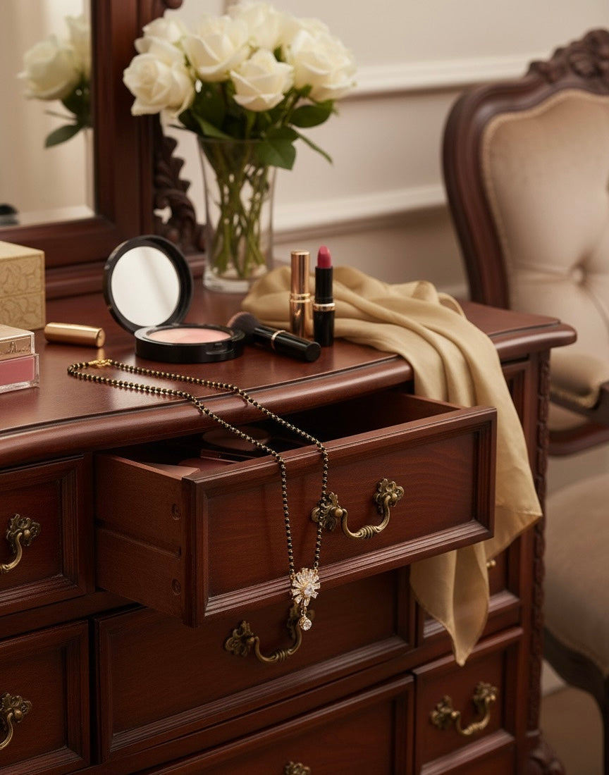 • Pendant: A gorgeous starburst or floral-inspired pendant, completely studded with shimmering clear stones (likely high-quality cubic zirconia).