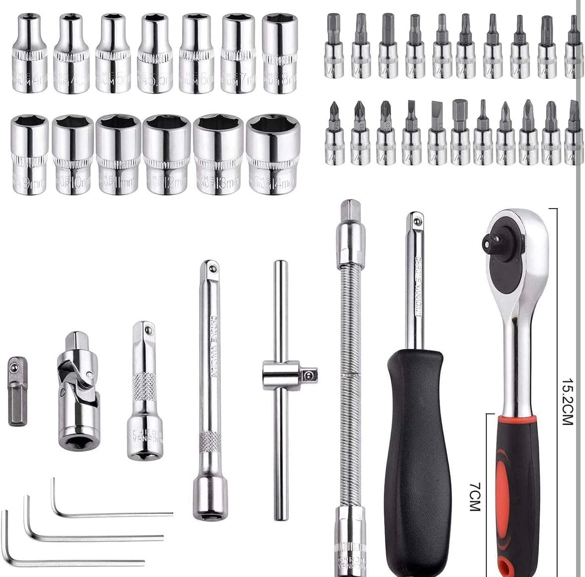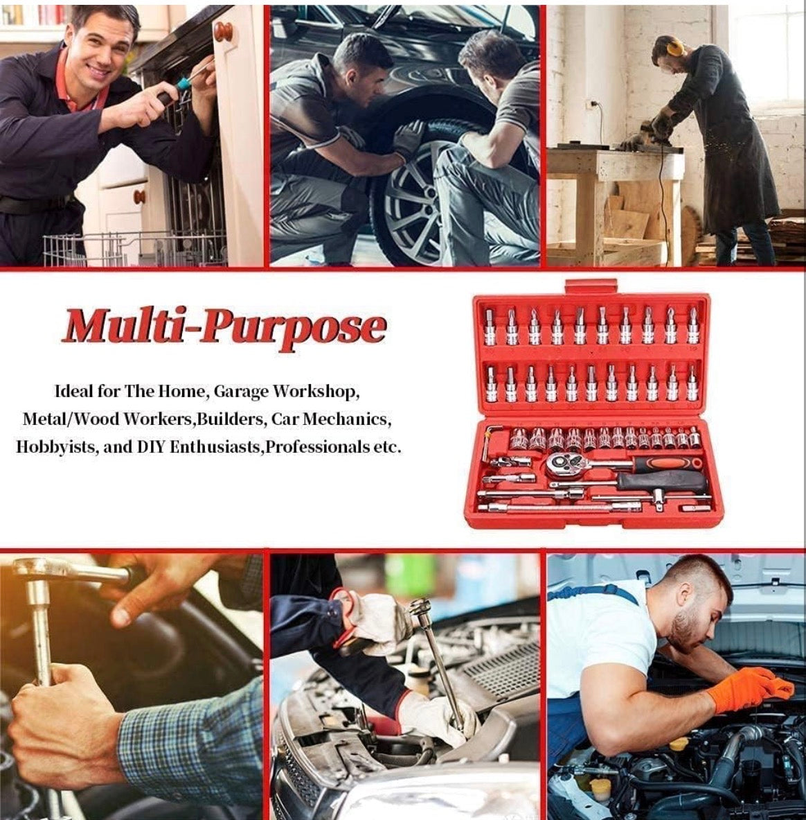 46 in 1 Car Repair Tool Kit with Quick Release Ratchet Wrench | Chrome Vanadium Socket Set