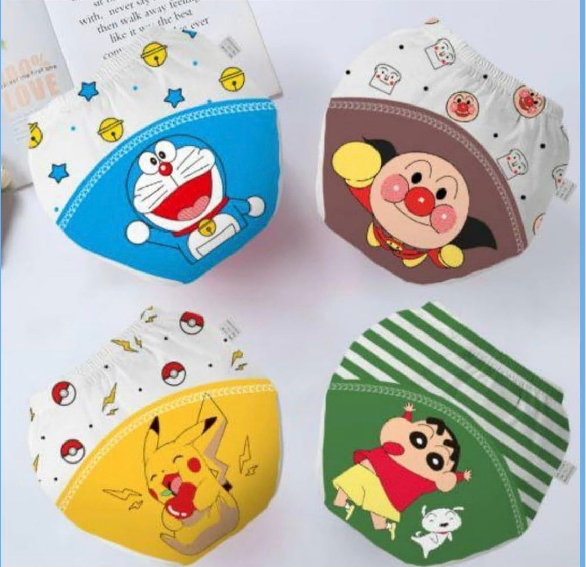 Soft, breathable baby diaper training pants made from reusable cotton fabric. Designed to help babies transition from diapers to underwear with comfort, leak protection, and cute cartoon prints.Product color and design will be depending on availability during delivery period