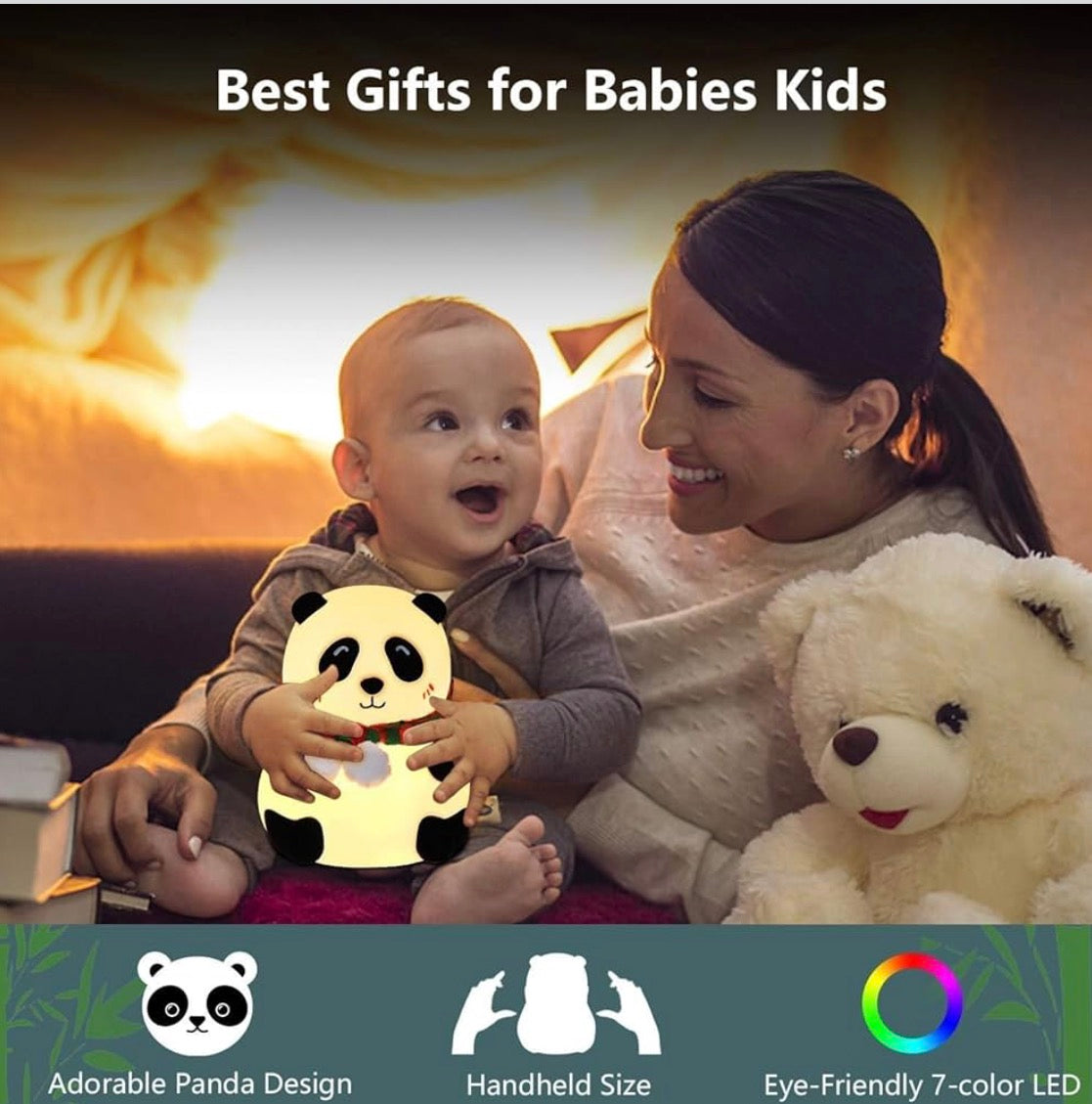 Cute Panda Night Lamp for Kids | 7-Color LED Rechargeable Nursery Night Light | Soft Silicone Baby Sleeping Lamp