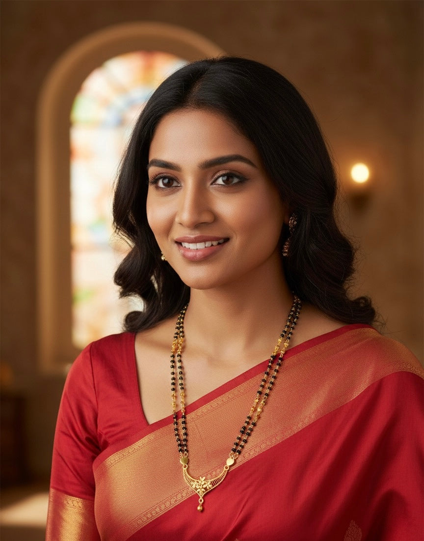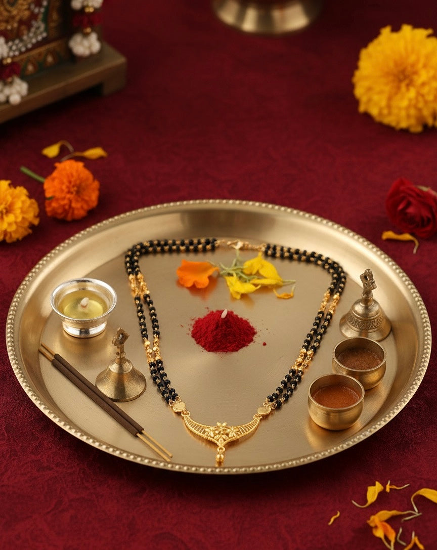 This elegant double-line black bead necklace is designed with a traditional yet modern touch. Made from premium alloy with a gold-tone finish (not real gold), it features two rows of black beads and a beautifully crafted decorative pendant. Lightweight, skin-friendly, and perfect for daily wear, festive wear, or gifting.