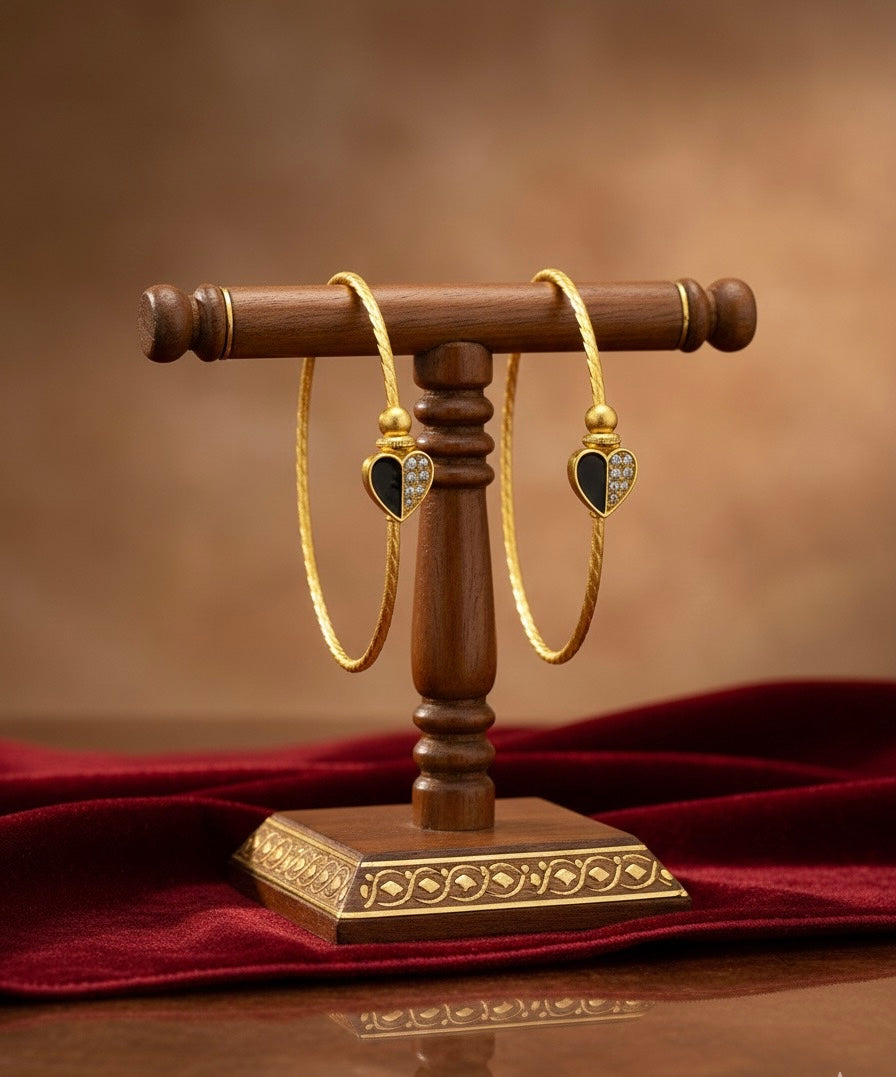 Heart Design Gold-Tone Bangles – Black & Stone Detailing (Pair)