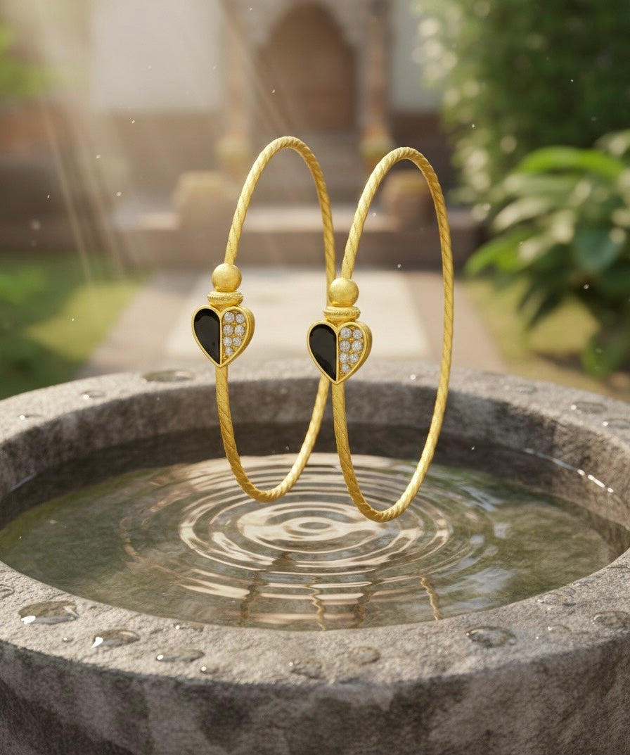 Add charm and elegance to your look with these beautiful gold-tone heart-design bangles, featuring a stylish half-black enamel and half-stone pattern. Crafted from high-quality alloy, these bangles are lightweight, skin-friendly, and perfect for daily wear, festive looks, or gifting.