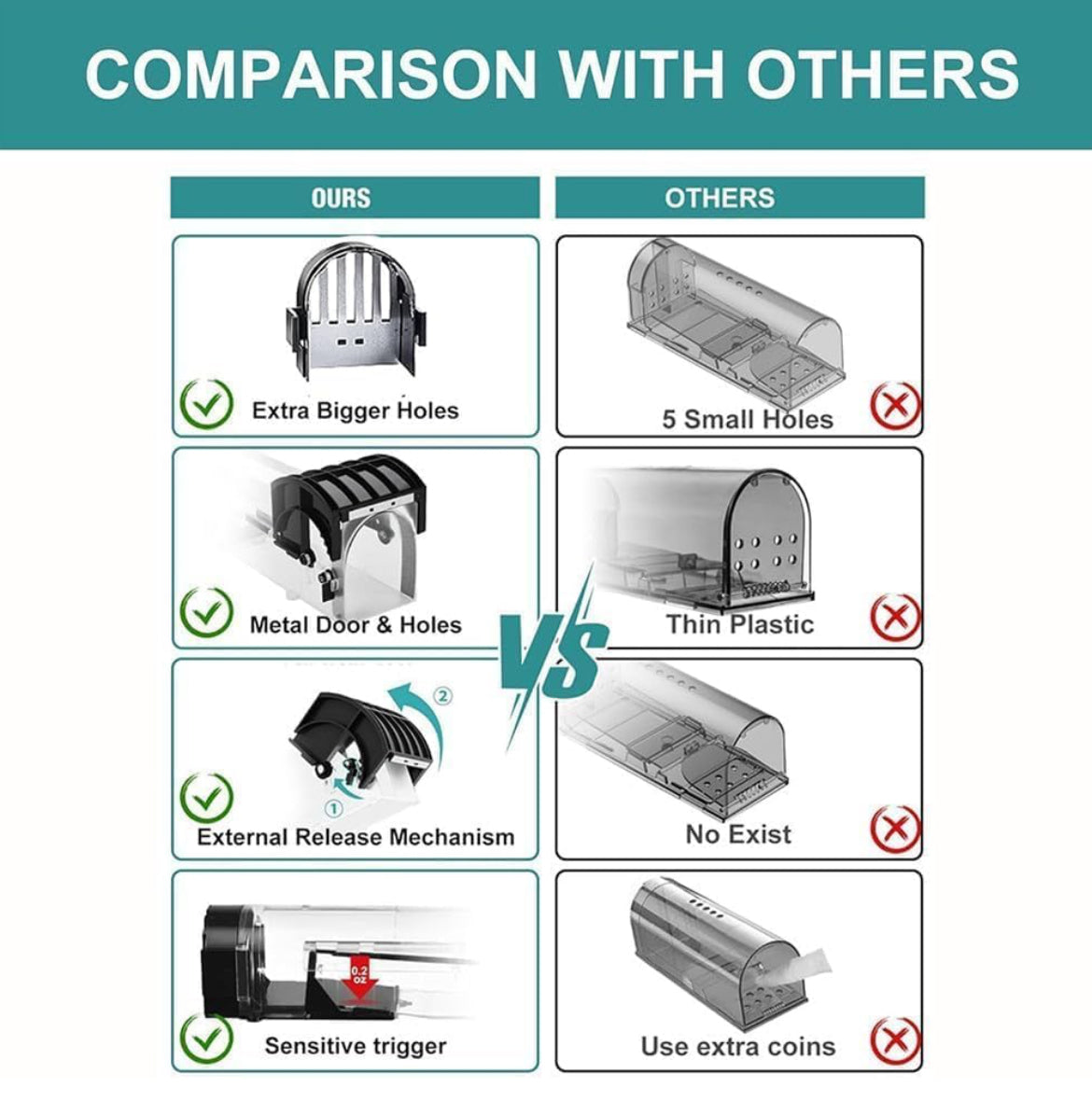 - Humane No-Kill Design: Catches mice safely without hurting them.
