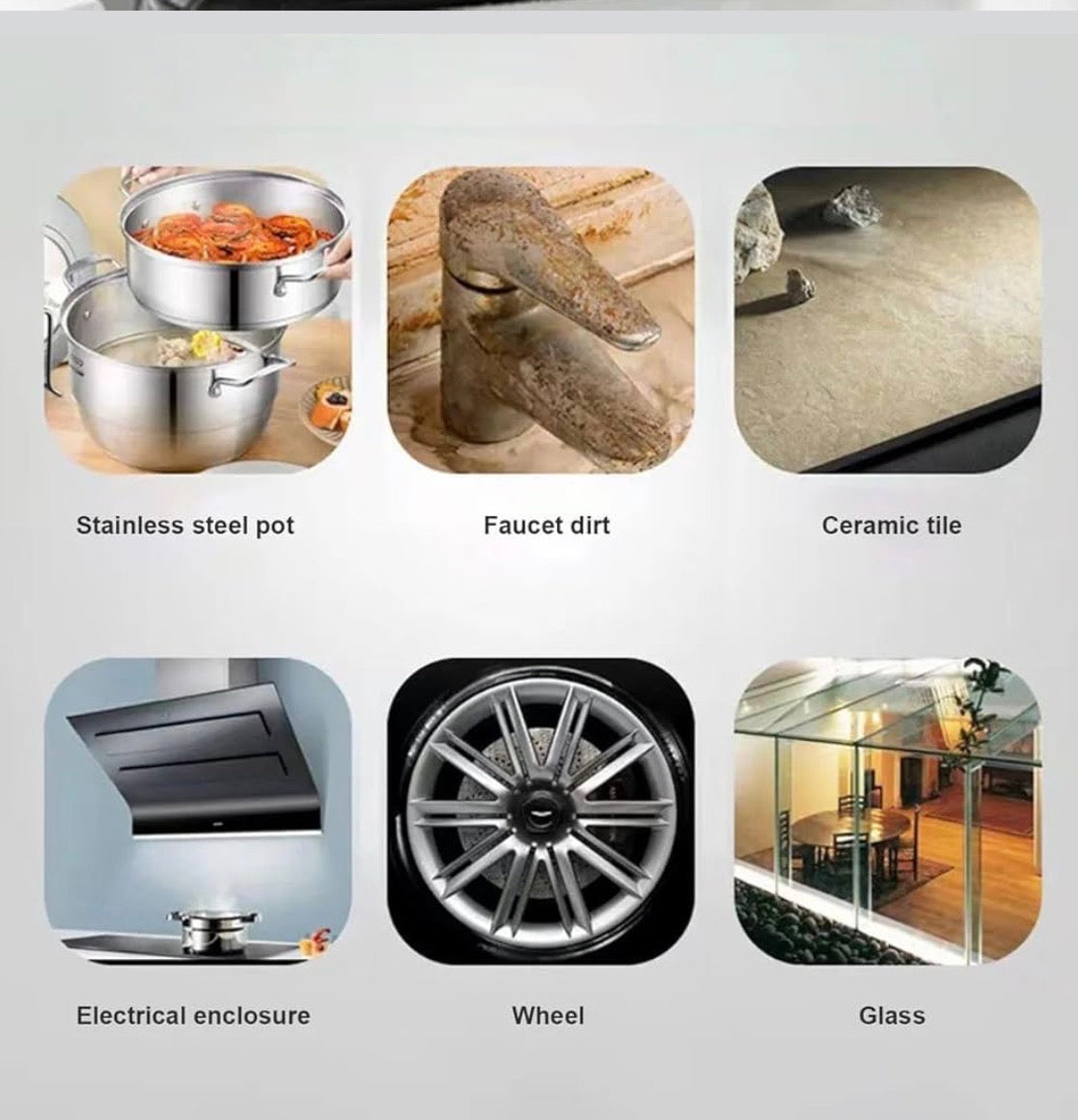 Perfect for gas stoves, stainless steel utensils, sinks, tiles, glass, exhaust hoods, and more. Just apply, scrub lightly, and rinse to see instant results.