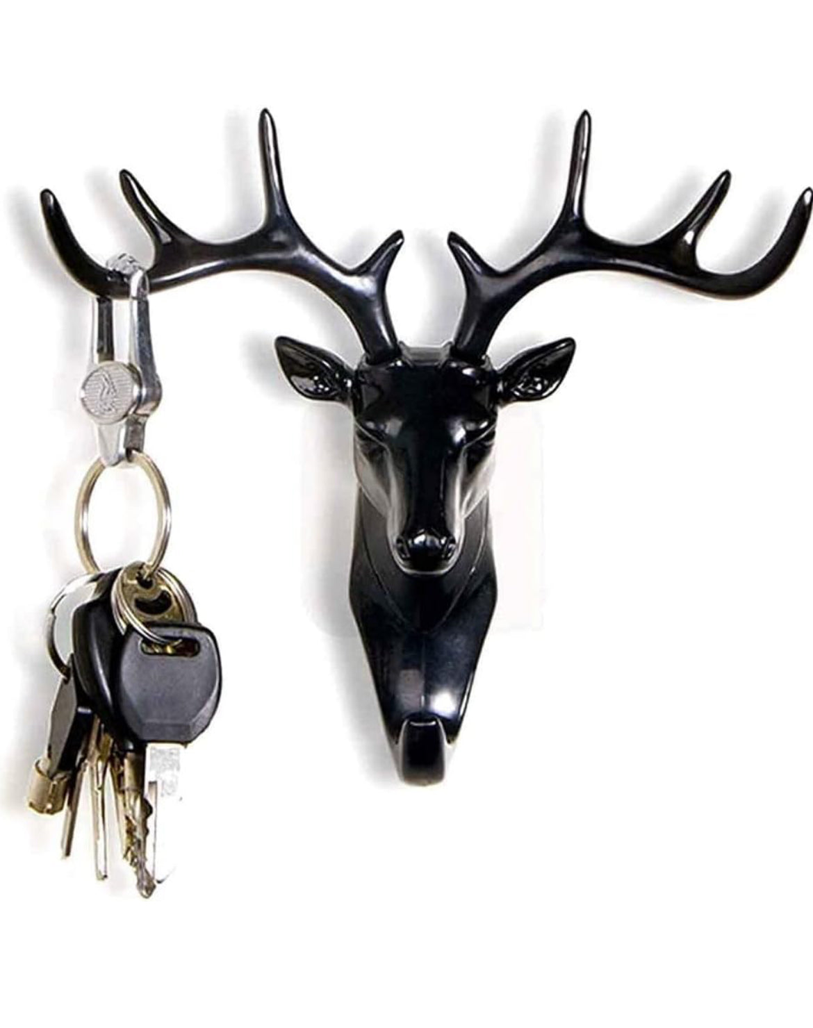 Add a touch of elegance to your home with this Premium Deer Head Wall Hook. Designed with detailed antlers and a glossy black finish, this hook is perfect for hanging keys, coats, hats, handbags, towels, jewellery, and more. The strong self-adhesive backing allows easy installation without drilling or damage to walls.