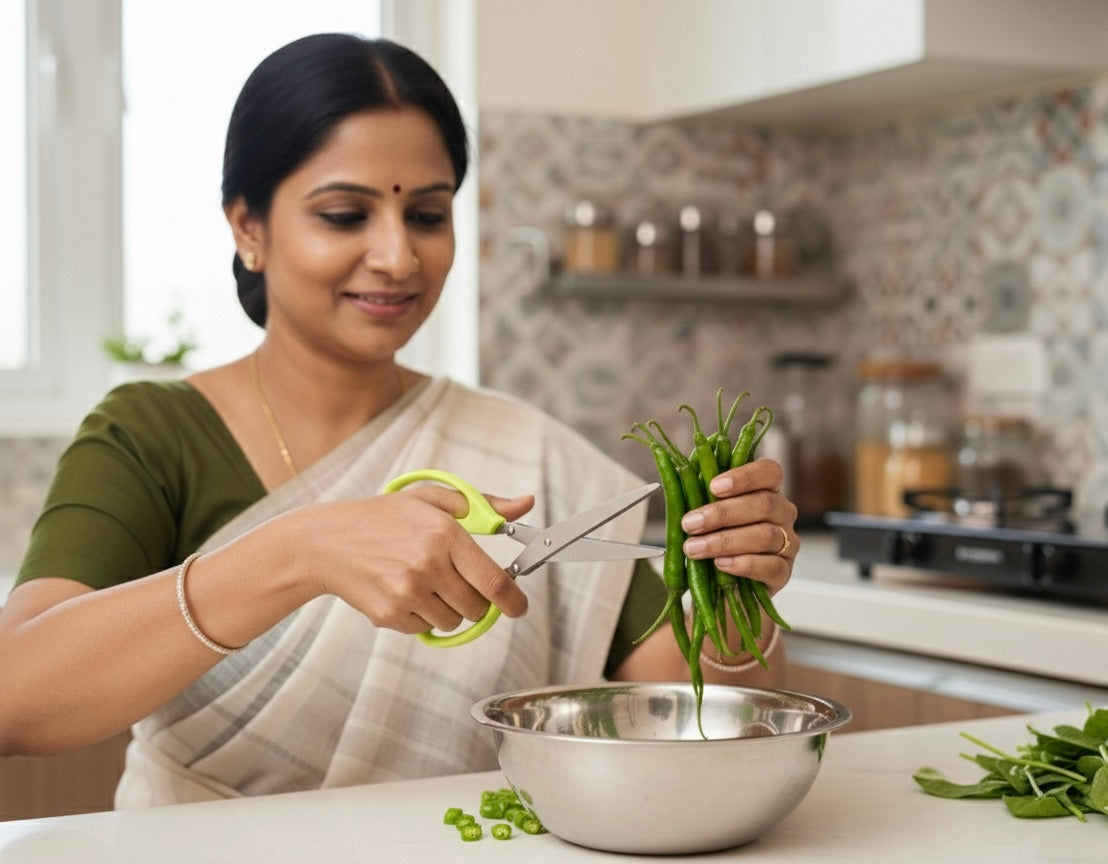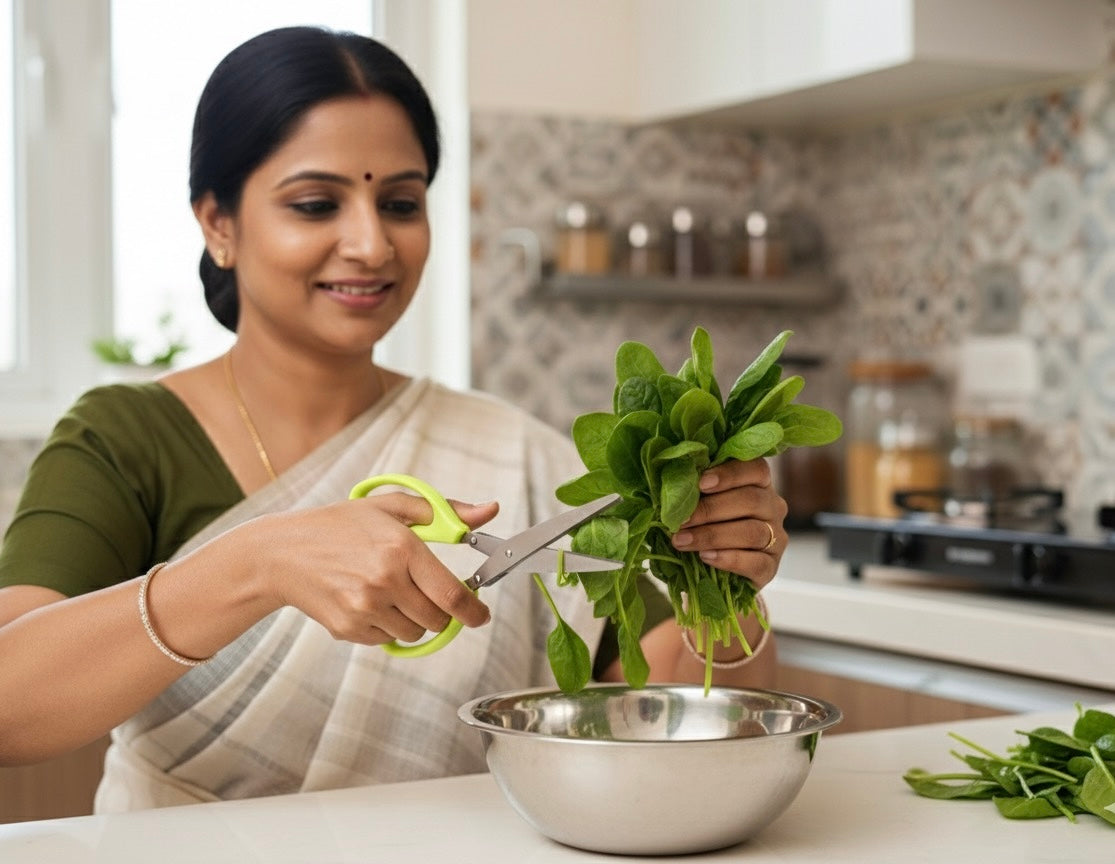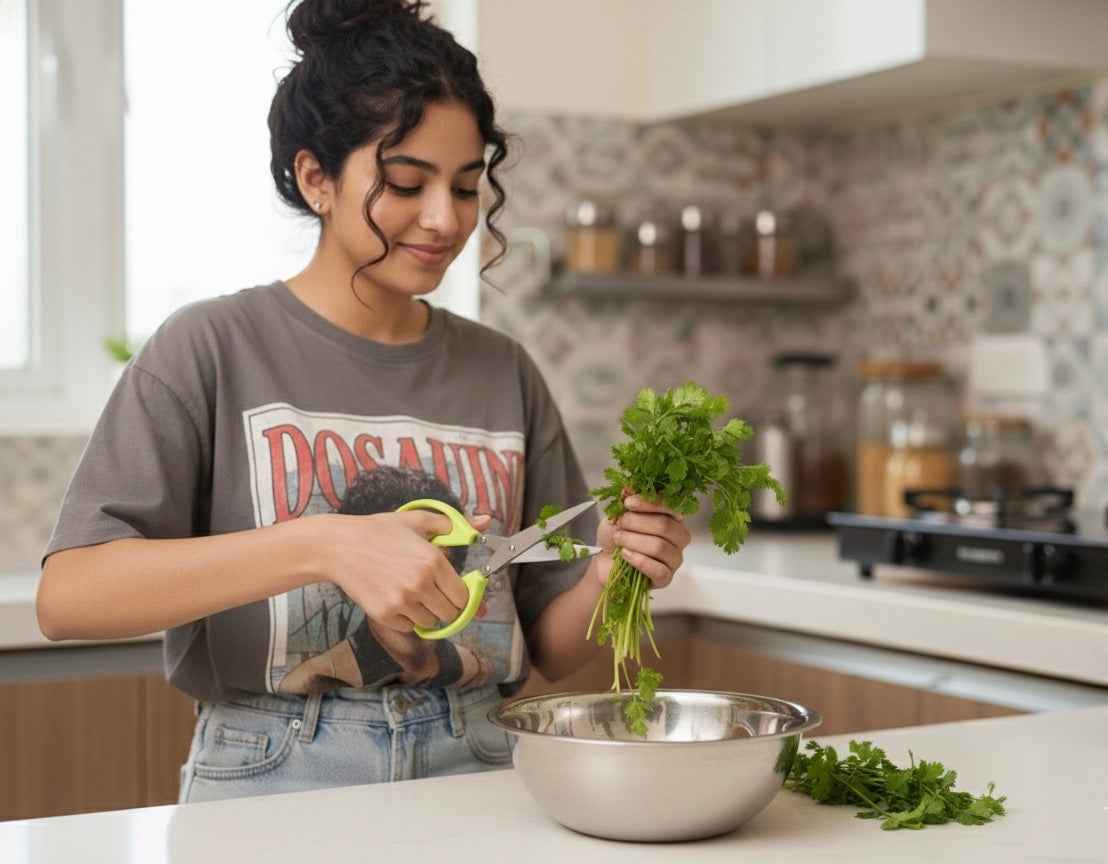 Designed with five sharp blades, these scissors slice herbs evenly in seconds, saving time and reducing mess. The ergonomic easy-grip handle ensures smooth cutting, even for large batches of coriander, mint, spring onions, microgreens, and vegetables.