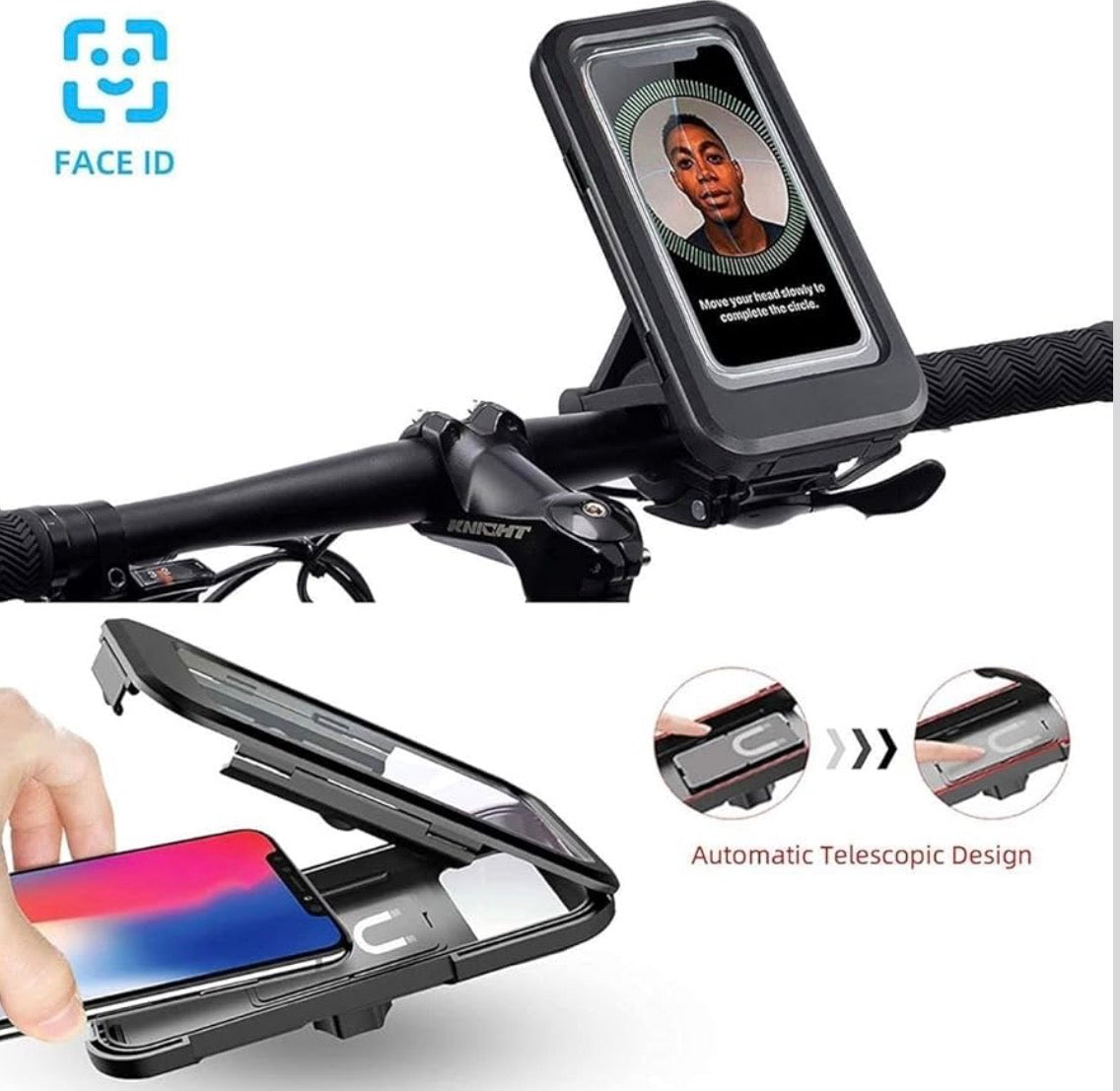 Ride safely and stay connected with this Waterproof Bike Phone Mount, designed for bicycles, motorcycles, e-bikes, strollers, and scooters. The sealed waterproof case protects your phone from rain, dust, and splashes while allowing full touch screen access, Face ID, and clear visibility during navigation.
